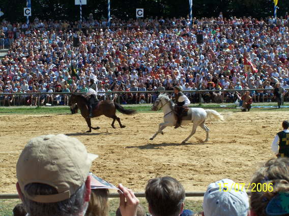Die neuen Ritter beweisen Ihre Fähigkeiten in der Arena vor dem Publikum.