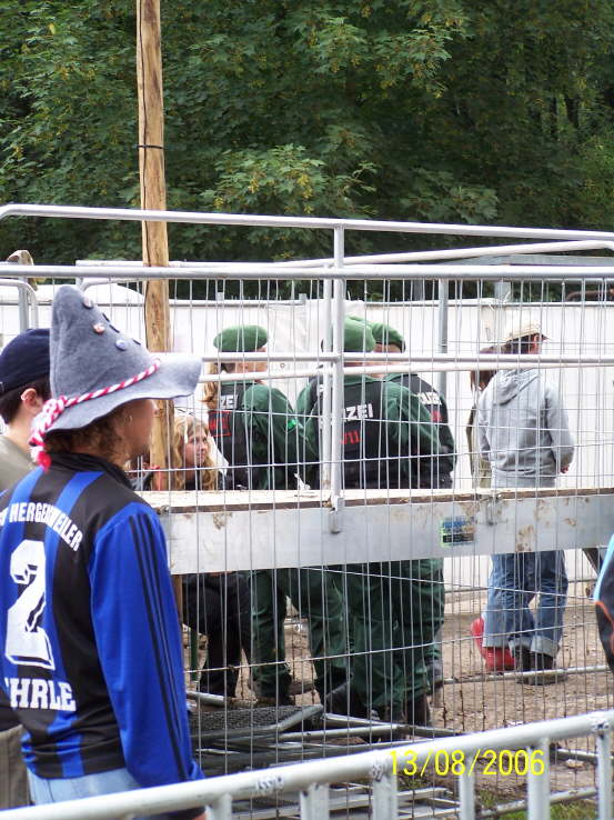 Fast könnte man das Bild “Bullen hinter Gitter” nennen.(Wobei “Bullen” nicht als Beleidigung gemeint ist!)