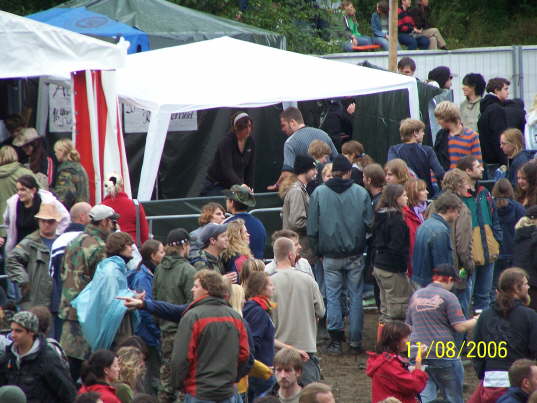 An diesem Stand gab es die Stoffarmbändchen. Allerdings nur als Erinnerung und ohne Eintrittsberechtigung... die gabs nur mit dem Kunststoffbändchen (2. Bild). Zwischendurch gab es hier die Autogramme der Stars.