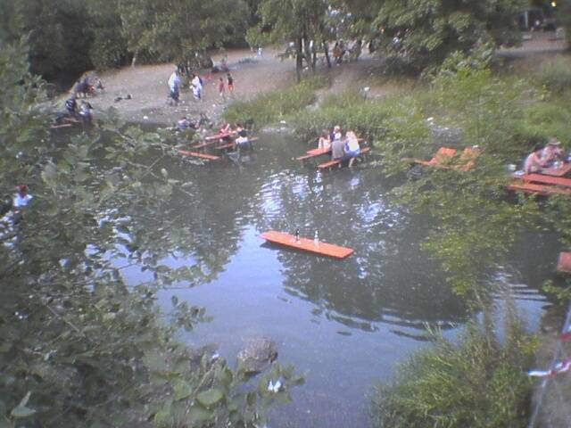 Hier die berühmten “Taubersitzer”... man gehe in den Biergarten, verstelle die Bänke um 20 m, kühle sich von innen mit einer kühlen Maß und von unten mit dem frischen Tauber-Wasser!