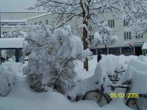 Schnee vor dem "Forum Fürstenried"