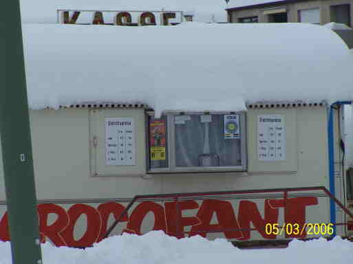 Das Kassenschild war fast zugeschneit.