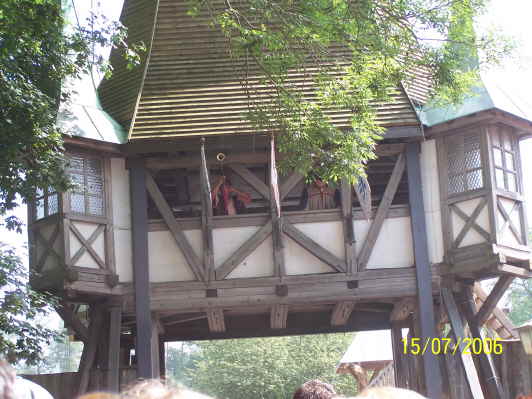 Beim Betreten des Geländes wurde man von diesen beiden Gesellen empfangen. Wenn nicht gerade eine Fanfare geblasen wurde, wurde über das Volk unten abgelästert.