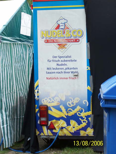 Beim “Basar” gab es auch was zu essen. Ein Stand mit lecker essen... nicht nur Nudeln aber auch!