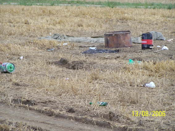 Hier Bierfässchen und eine Tonne, die als Lagerfeuereinfassung genutzt wurde.