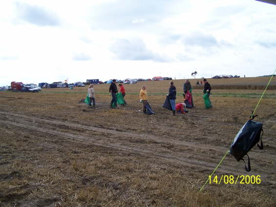 Die Zelte stehen noch und der erste Trupp des Veranstalters war unterwegs um den Platz wieder auf Vordermann zu bringen. Voriges Jahr wurden immerhin 70 t Müll vom Veranstalter entsorgt.