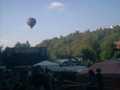 Das schöne Wetter wurde auch dieses Jahr wieder von einem Ballonfahrer genutzt. Das gibt sicher wieder tolle Luftaufnahmen vom Festival! In den letzten Jahren waren auf www.taubertal-openair.de auch immer wieder Aufnahmen zu finden, die bestimmt vom Ballon aus gemacht wurden. Ich bin schon gespannt auf die Bilder von diesem Jahr!
